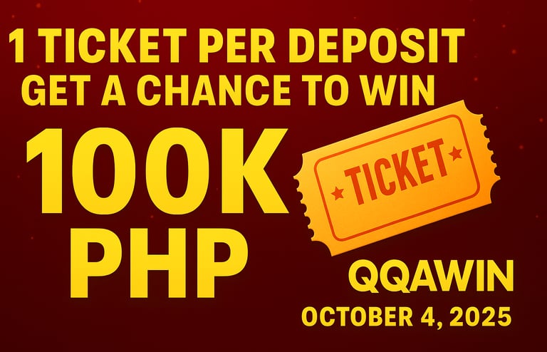 The 1 Ticket Per Deposit = Chance to Win ₱100,000 promotion at QQAWIN, announced October 4, 2025, is your chance to make every deposit count twice: once for your favorite games, and once for the possibility of a life-changing win.